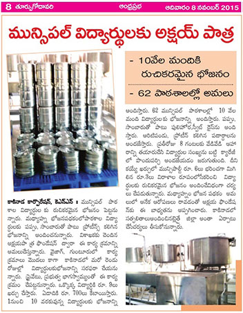 Akshaya Patra starts serving mid-day meals to municipal schools