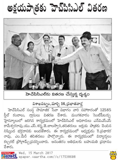 HPCL donated 12,585 steel plates and glasses to Akshaya Patra